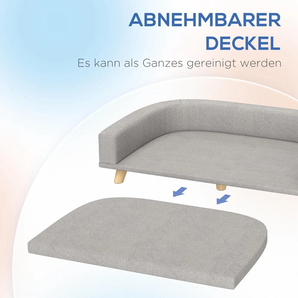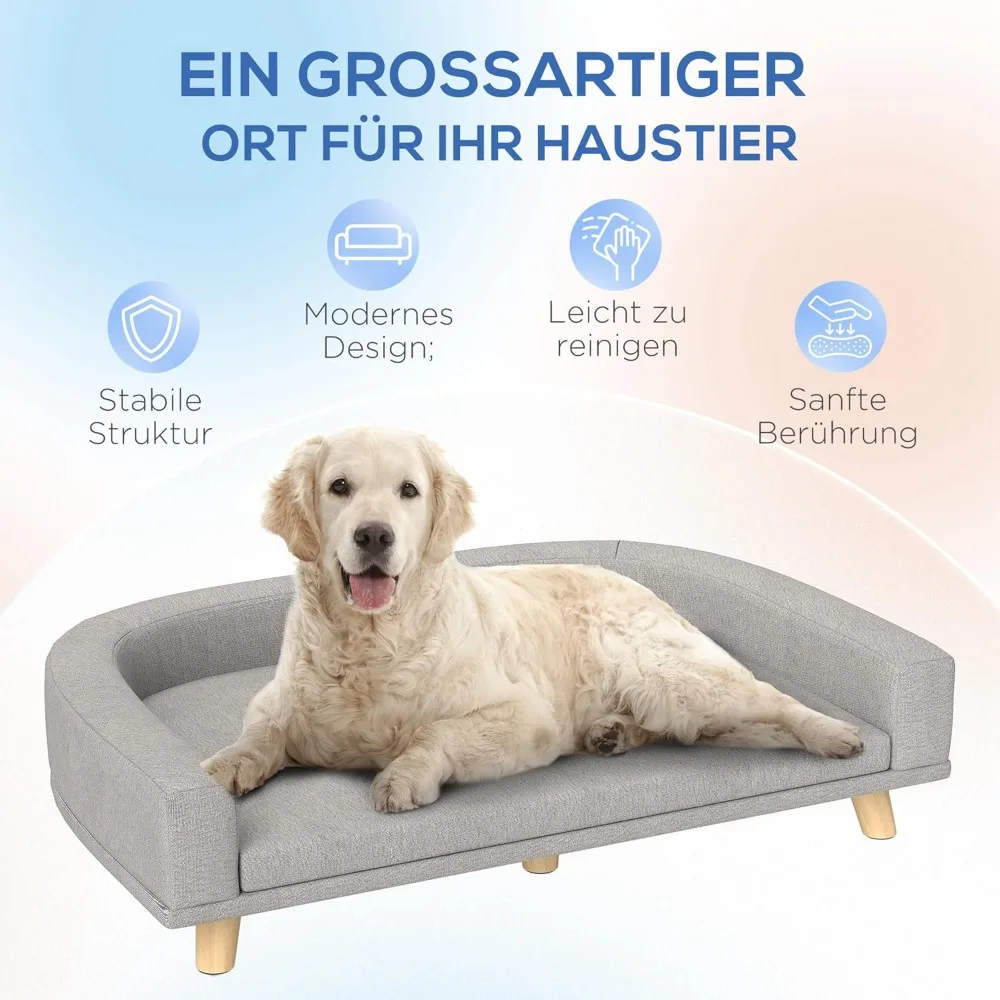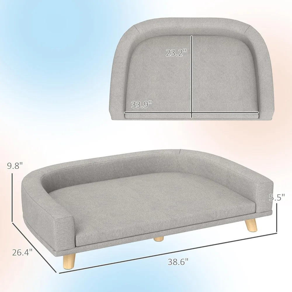 Luxurious Comfort: This pet sofa features plush polyester fabric and thick foam for comfort, ensuring your pet enjoys restful naps. Robust & Stylish: Crafted with robust MDF and pine wood legs, this dog sofa bed blends durability with elegance for your home. Easy Maintenance: The fancy dog bed includes a removable cushion, simplifying cleaning and keeping the space fresh for your pet. Elevated for Cleanliness: This pet sofa bed stands on 3.15″ high legs, promoting air circulation and easy cleaning underneath. Dog Couch Bed Info: Overall Dimensions: 38.6″ W x 26.4″ D x 9.8″ H. Suitable for large dogs with body length up to 23.6″ and less than 66 lbs. Assembly required.